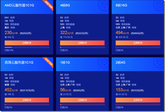 每天、每场的活动机型不同,大家对于云服务器或者云数据库有需求的可以关注下,毕竟国内大厂,安全性方面有较大优势,用国内的也不用整天担心抽风之类的问题。