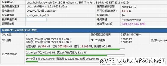 下面,好VPS分享一些VPS.NET测试数据(个人自用,凡涉及IP部分均隐去,请谅解),先上探针,从探针看到这个VPS是有SWAP的,还很给力呢