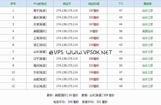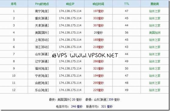 Jolly Works Hosting提供的VPS数据中心位于国内访问速度优秀的美国凤凰城机房,官方提供了一个测试IP:174.138.175.114。电信ping值普遍较低,联通小悲剧。
