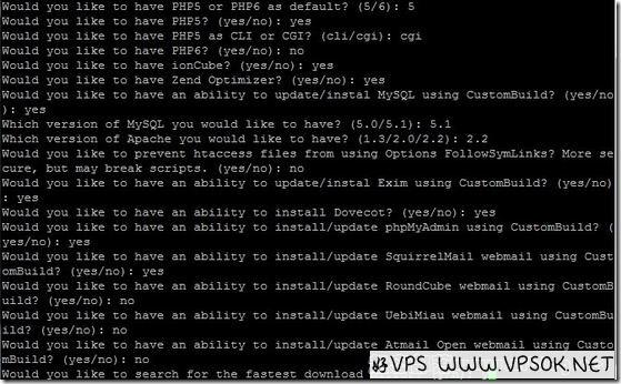 最后一个选择后,他会先检查你服务器最快的下载源,然后开始编译,安装。
