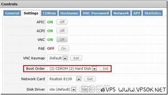 首先,我们登录SolusVM面板,设定光驱启动, 并在光驱放入CentOS的ISO文件。