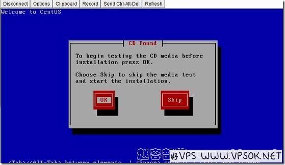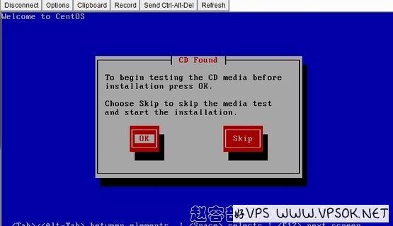 下面这张图,是选择CD安装的页面,提示找到了CD,询问是否需要检测,这个没有太多必要,直接点跳过就可以了。