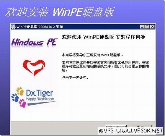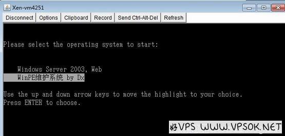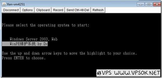 安装的过程非常的简单,跟我装QQ一样,完成后,重启,记住,使用VNC连接,重启会断开,断开后立即点重连,不然,您看不到系统选择的菜单,如下图,选择PE启动。