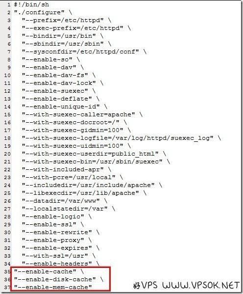 我们要在编译配置文件中加入Mod_cache编译部分。