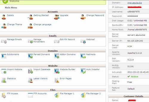 azuka.biz提供的是无限免费主机,无限的空间,带宽和所有功能。据说这个免费空间也是YouHosting的分销,好VPS申请了也基本确认了,因为CP登录界面YouHosting的LOGO非常明显。但是他却提供了无限空间和流量,这还是很难得的。