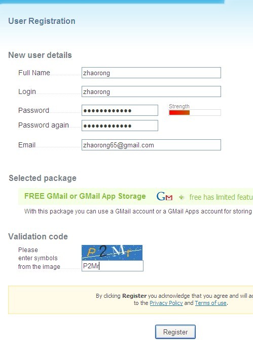 填写完成之后,点Register注册,然后去我们的邮箱收一份激活信,点击链接激活下然后到网站拿我们刚注册的用户和密码登陆。接下来,还要重新选择一次服务,我大概说下,就不截图了。登陆之后,我们看到我们的个人中心,页面的左侧选择第一项Gmail,然后点下面的继续按钮,这一步我们填写下我们的gmail登陆的用户和密码,然后再下一步,OK,我们的前期的工作就到这里了。下面,我们来说重点,如果外链吧。