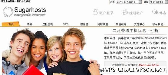 以上优惠码适用于传统型VPS任意套餐月付,为首月折扣,续费原价,有效期至2014年2月20日。Sugarhosts支持支付宝或者PayPal美元支付,同时也提供SSD磁盘的Linux系统或者HDD磁盘的windows系统产品(分不同母鸡)。