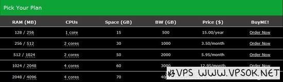 buyVM.net最便宜的一款VPS,也是$15年付,相当便宜,今天就向大家讨论下这个VPS吧。这家部分VPS的配置和价格,我们还是来看截图吧。