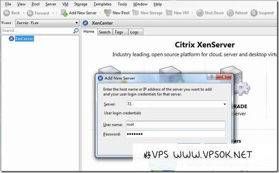 在XenCenter点击鼠标右键,选择Add,添加服务器,写入服务器IP和root账户密码。