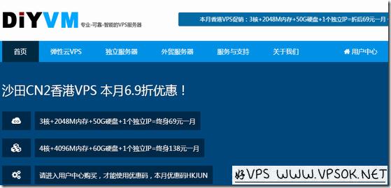 DiyVM是一家成立于2009年的国人VPS主机商,提供基于XEN架构的VPS产品,数据中心包括中国香港和美国洛杉矶等。最近收到主机商优惠信息邮件,本月对于香港沙田电信提供优惠促销,最低款1G内存套餐月付仅50元起,2G内存以上可用优惠码获得折扣。