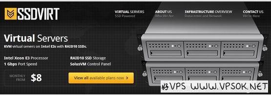 SSDVirt是一家比较新的国外VPS主机商,从域名就可以看出他是准备做SSD硬盘VPS的啦,提供的产品基于OpenVZ和KVM架构,采用SolusVM管理面板,数据中心包括新泽西(KVM)和达拉斯(OpenVZ)。目前,主机商新上了达拉斯OpenVZ产品,并提供一些折扣,最低一款vz128套餐每年支付仅12美元。