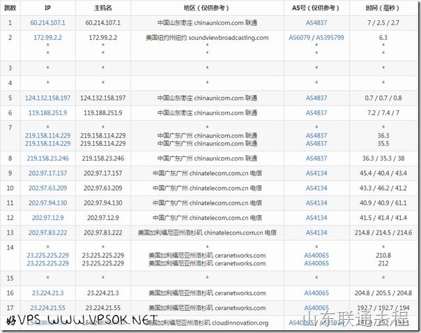 回程路由就使用脚本测试,直接贴上执行结果,三网回程走上海联通AS4837