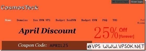 CosmosTeck是一家国外VPS主机商,提供基于XEN和KVM架构的VPS,数据中心包括美国西岸洛杉矶和凤凰城等,国内访问速度不错。目前,主机商在WHT发布KVM架构产品终身五折优惠,一款1GB产品每月仅7.97美元,支持linux或者windows操作系统。