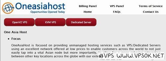 OneAsiaHost是一家新加坡主机商,提供基于OpenVZ和KVM架构的VPS,数据中心在新加坡,国内访问速度不错,最低配置的一款OpenVZ每月仅7美元。